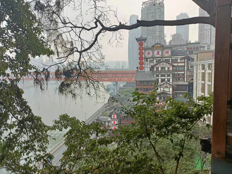 走到戴家巷的尽头,到了崖壁步道的高处,环视嘉陵江面,这时在椅子上坐一坐,或者在栏杆上靠一靠,一颗心也能很快的闲适下来。