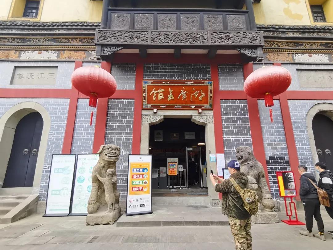 沿着东水门城门旁边新修建的“廻风廊”往前走,便是湖广会馆。刚到馆前,门口的石狮子便吸引了大家的目光,淘气的造型,狎昵的神态,引出大家许多的奇思妙想。